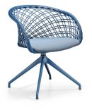 Materials: Swivel armchair. Swiveling metal base with a painted finish. Backrest in woven hide leather. Seat upholstered in fabric or leather.